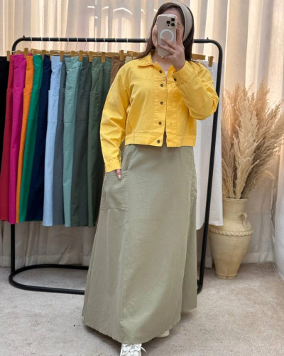 دامن زنانه لینن ازبک قد۱۰۰ مدل جیب هلالی