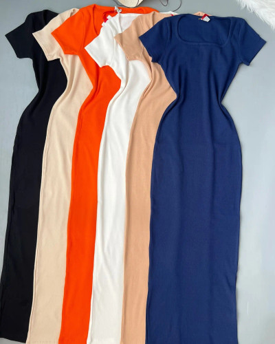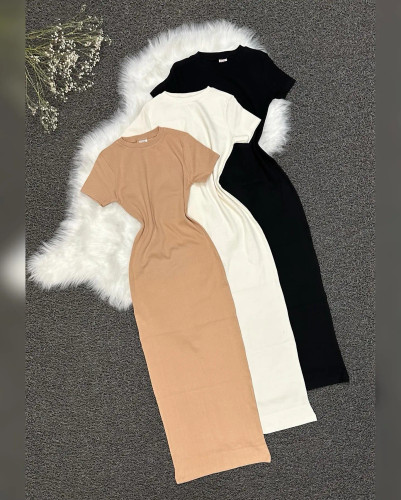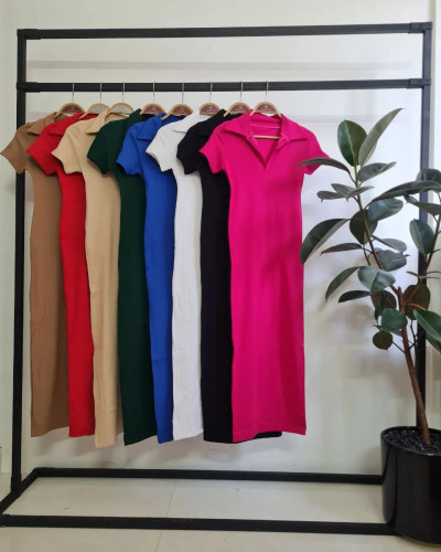 ناموجودپیراهن ماکسی آستین کوتاه زنانه کشبافت یقه شکاری قد ۱۳۰سانت