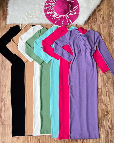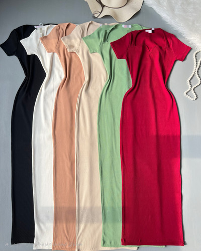 ناموجودپیراهن ماکسی زنانه یقه دلبری جنس کبریتی ترک قد ۱۳۰