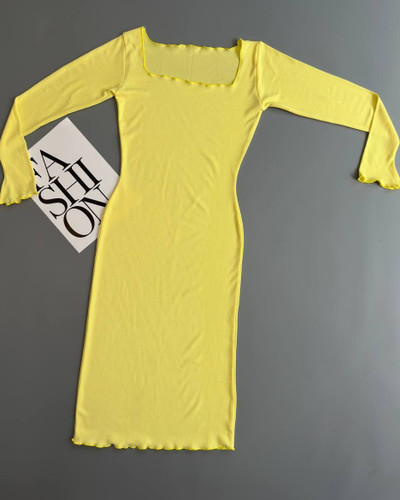 پیراهن سارافونی زنانه ترک وارداتی مدل یقه خشتی کشبافت قد 90