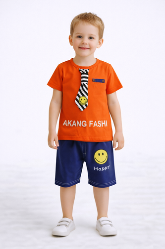 ست تیشرت شلوارک کراواتی پسرانه نخی وارداتی