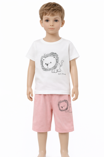 ست تیشرت شلوارک اسپرت دخترانه و پسرانه طرح شیر | نخ پنبه اصل