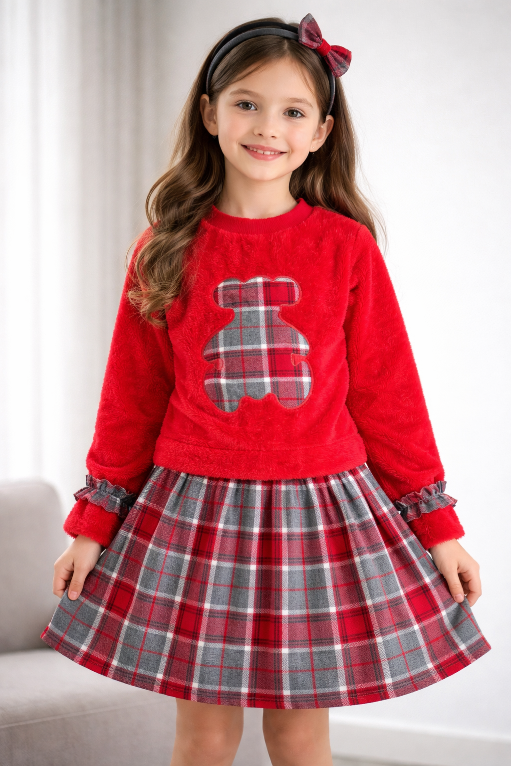 پیراهن چهارخانه دخترانه پشمی | مناسب 4 تا ۷ سال
