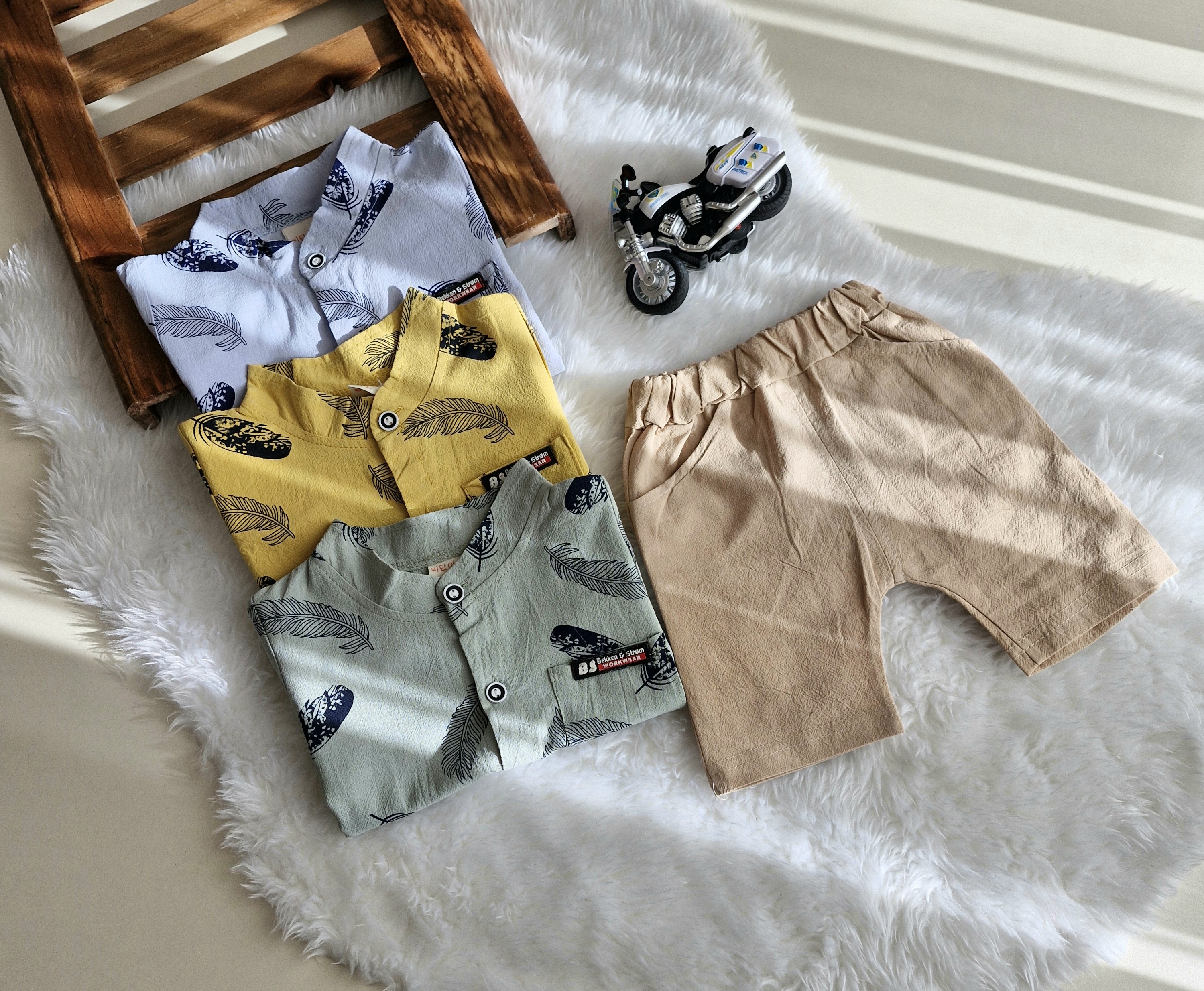ست تیشرت شلوارک کراواتی پسرانه نخی وارداتی