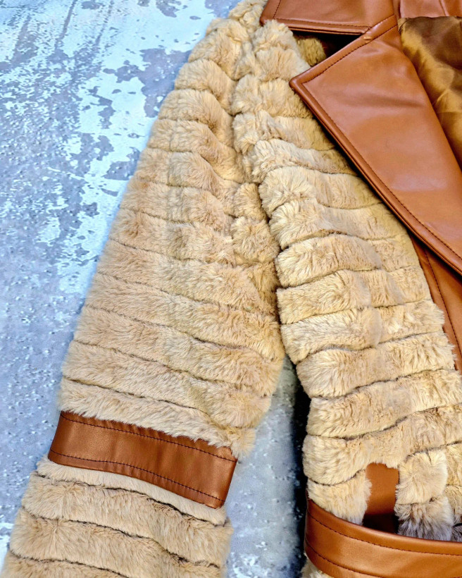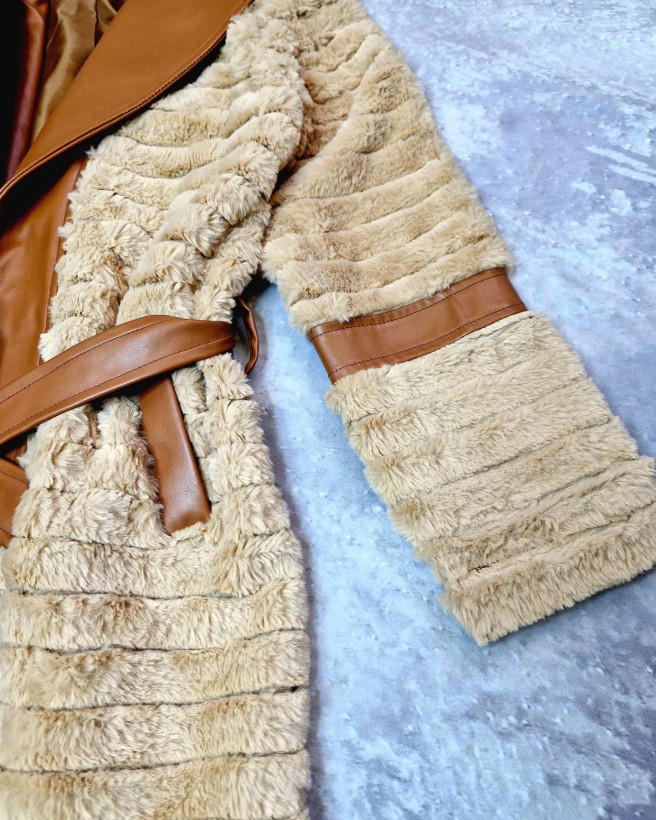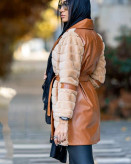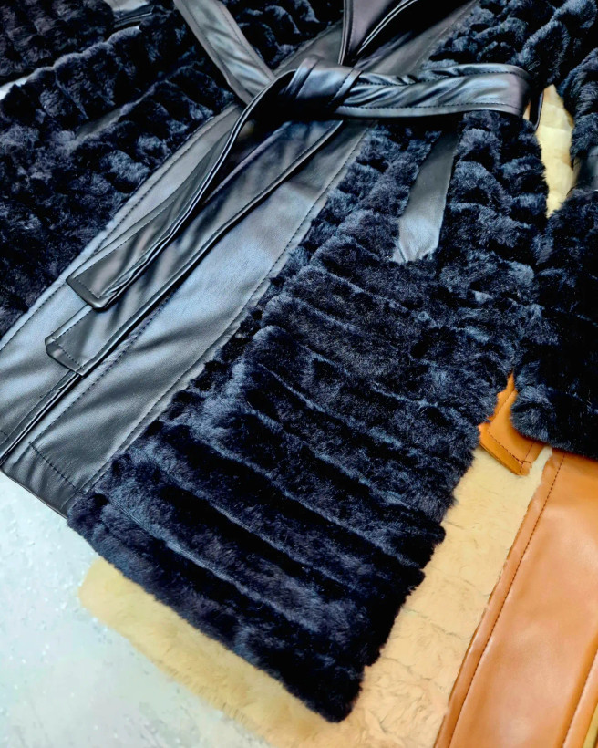 پالتو ترکیب چرم و پوست آستردار قد۸۰