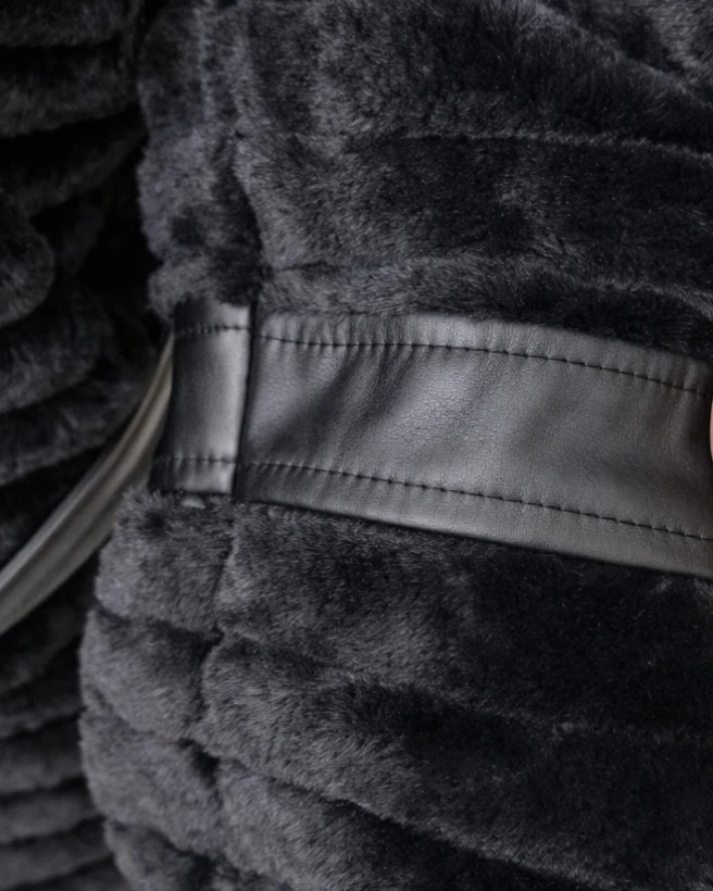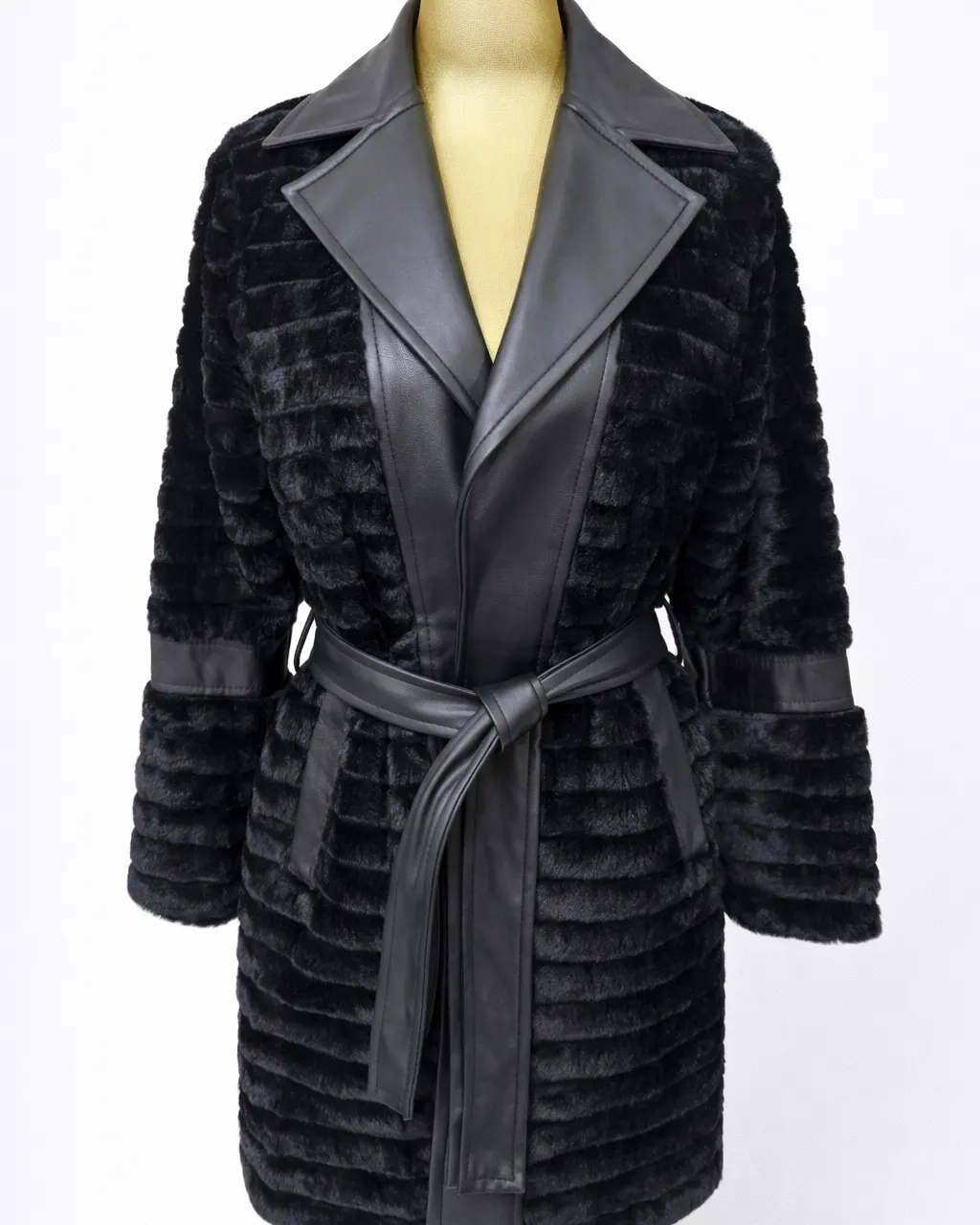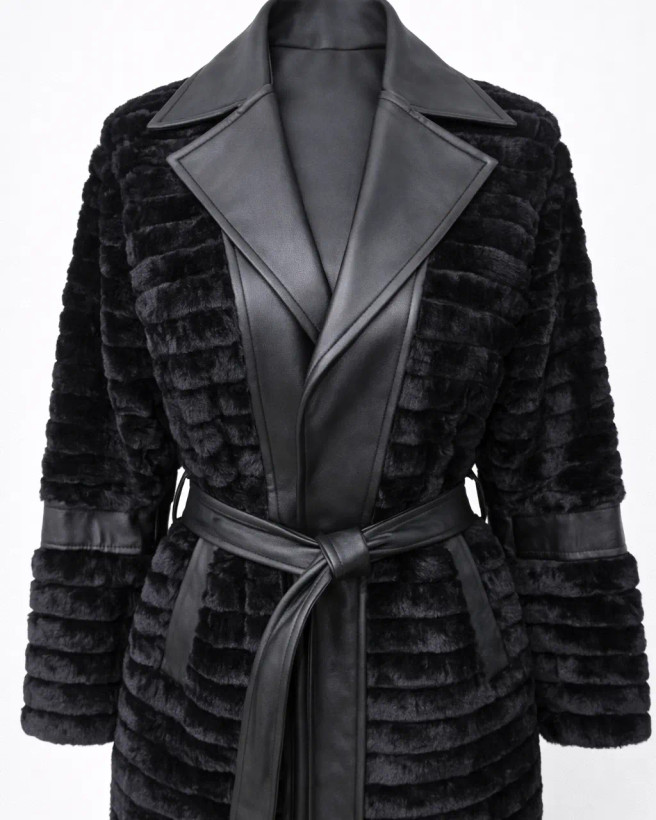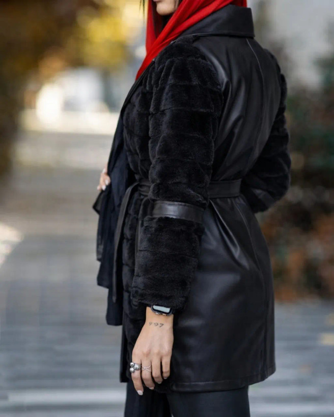 پالتو ترکیب چرم و پوست آستردار قد۸۰
