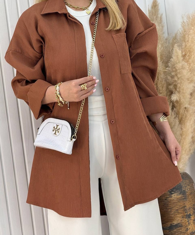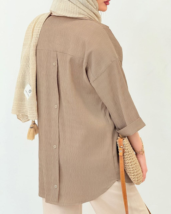 این مانتوی جذاب با طراحی یقه مردانه و دکمههای مخفی، هم شیکه هم کاربردی.