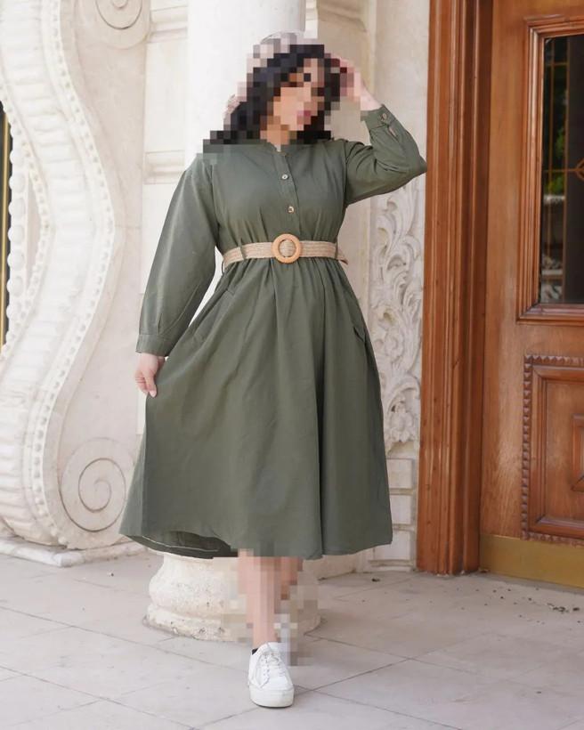 مانتو کفتان زنانه جنس لینن مدل سه دکمه