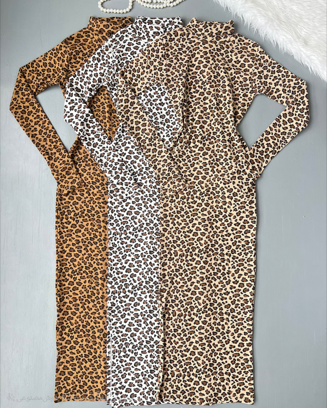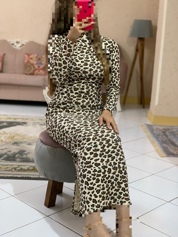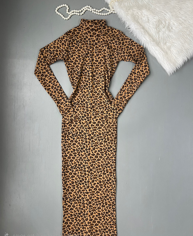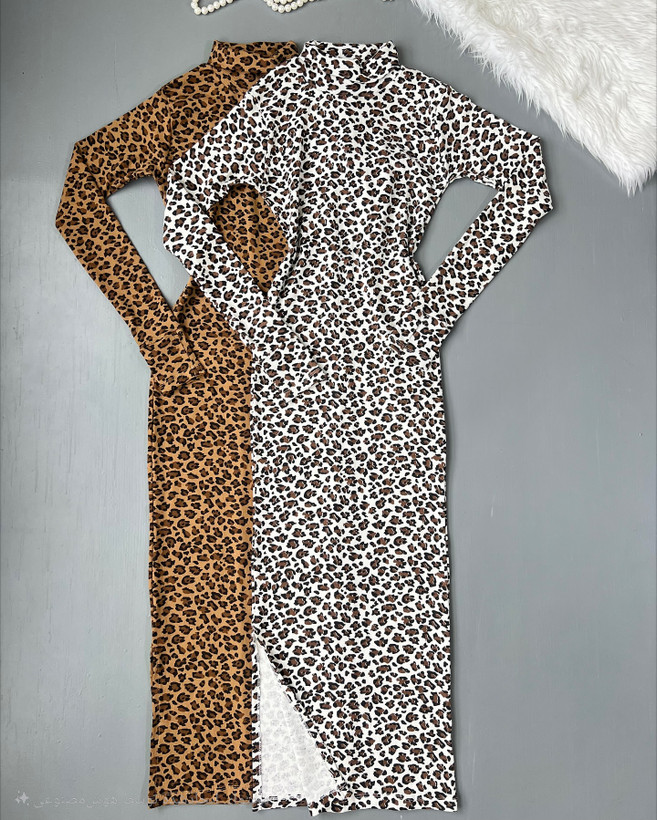پیراهن ماکسی پلنگی یقه اسکی