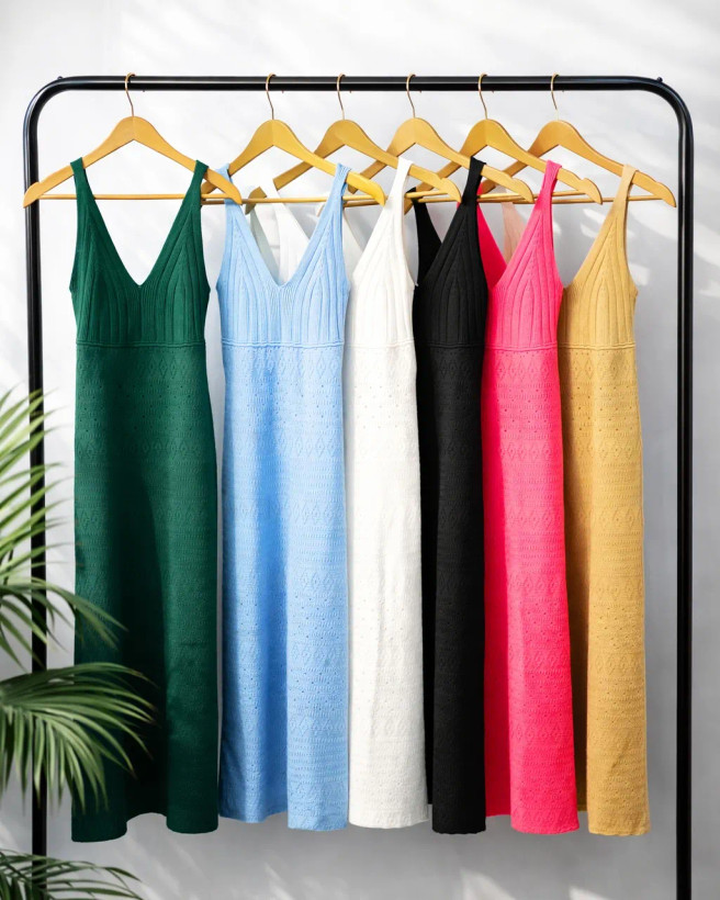 پیراهن ماکسی کشبافت سوزنی وارداتی