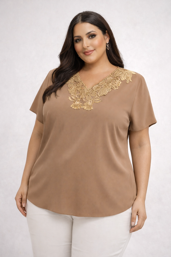 تاپ گیپوری کرپ الیزه از نظر متریال و طراحی، گزینهای ایدهآل برای سایزهای بزرگ به شمار میرود. کرپ الیزه بهدلیل خنکی و ایستایی مناسب، بدون چسبیدن به بدن، فرمی آراسته ایجاد میکند.
