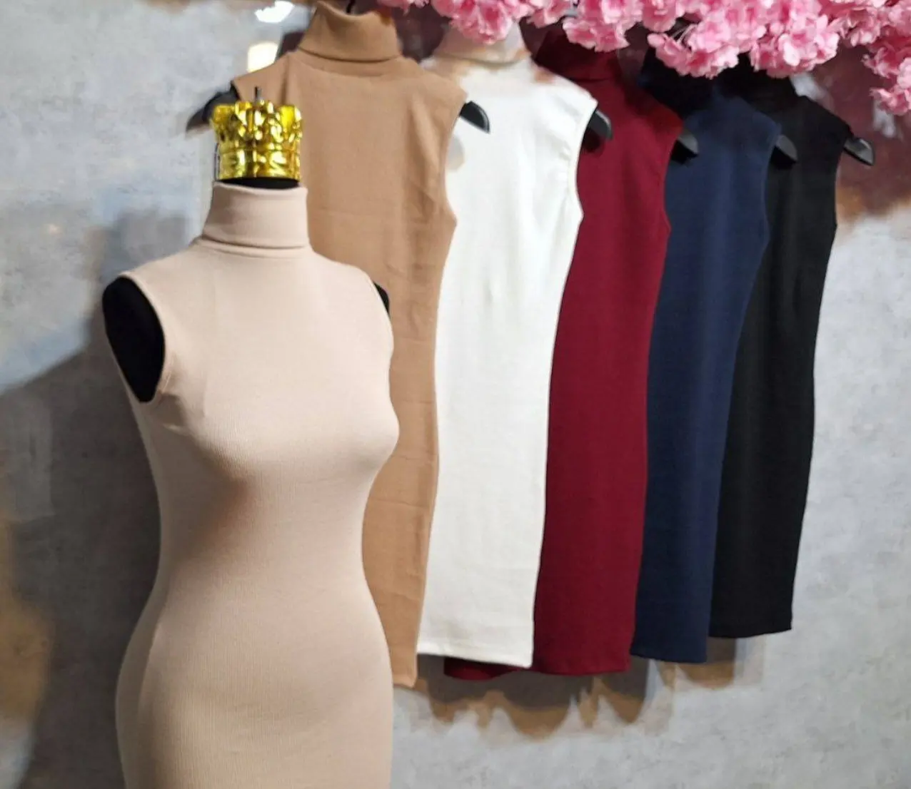 پیراهن ماکسی زنانه یقه اسکی | پنبه کبریتی کشی، فری‌سایز