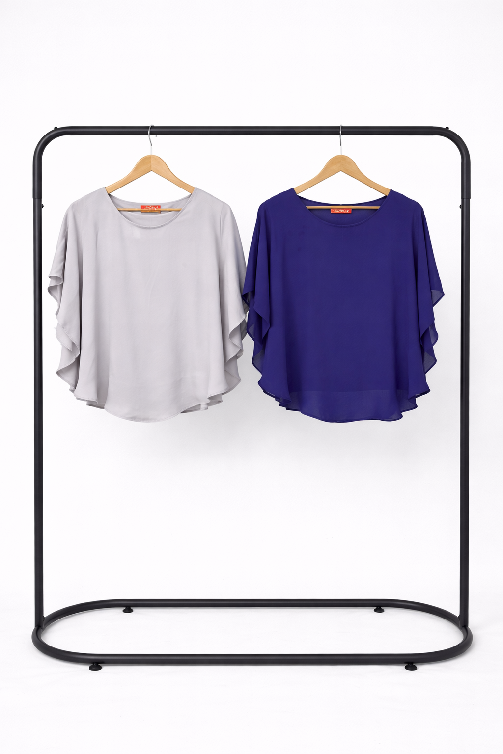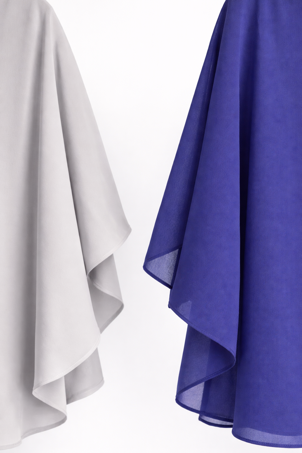 رنگ بنفش با لایههای تور، گزینهای مناسب برای استایلهای خاص و مهمانیهای نیمهرسمی محسوب میشود، در حالی که رنگ طوسی با بافت ساتنمانند و براقیت کنترلشده، انتخابی ایدهآل برای استفاده روزمره و محیطهای رسمیتر است.