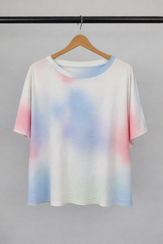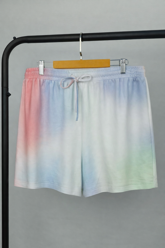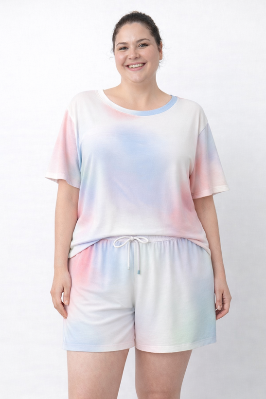 ست تیشرت و شلوارک وارداتی زنانه طرح آبرنگی نخ پنبه(پلاس سایز)