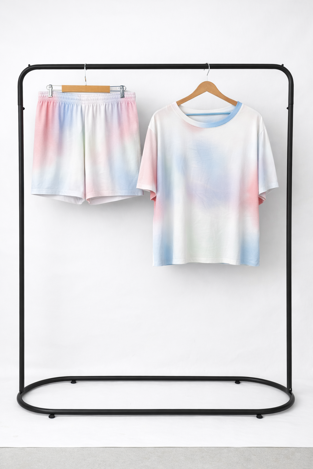ست تیشرت و شلوارک وارداتی زنانه طرح آبرنگی نخ پنبه(پلاس سایز)