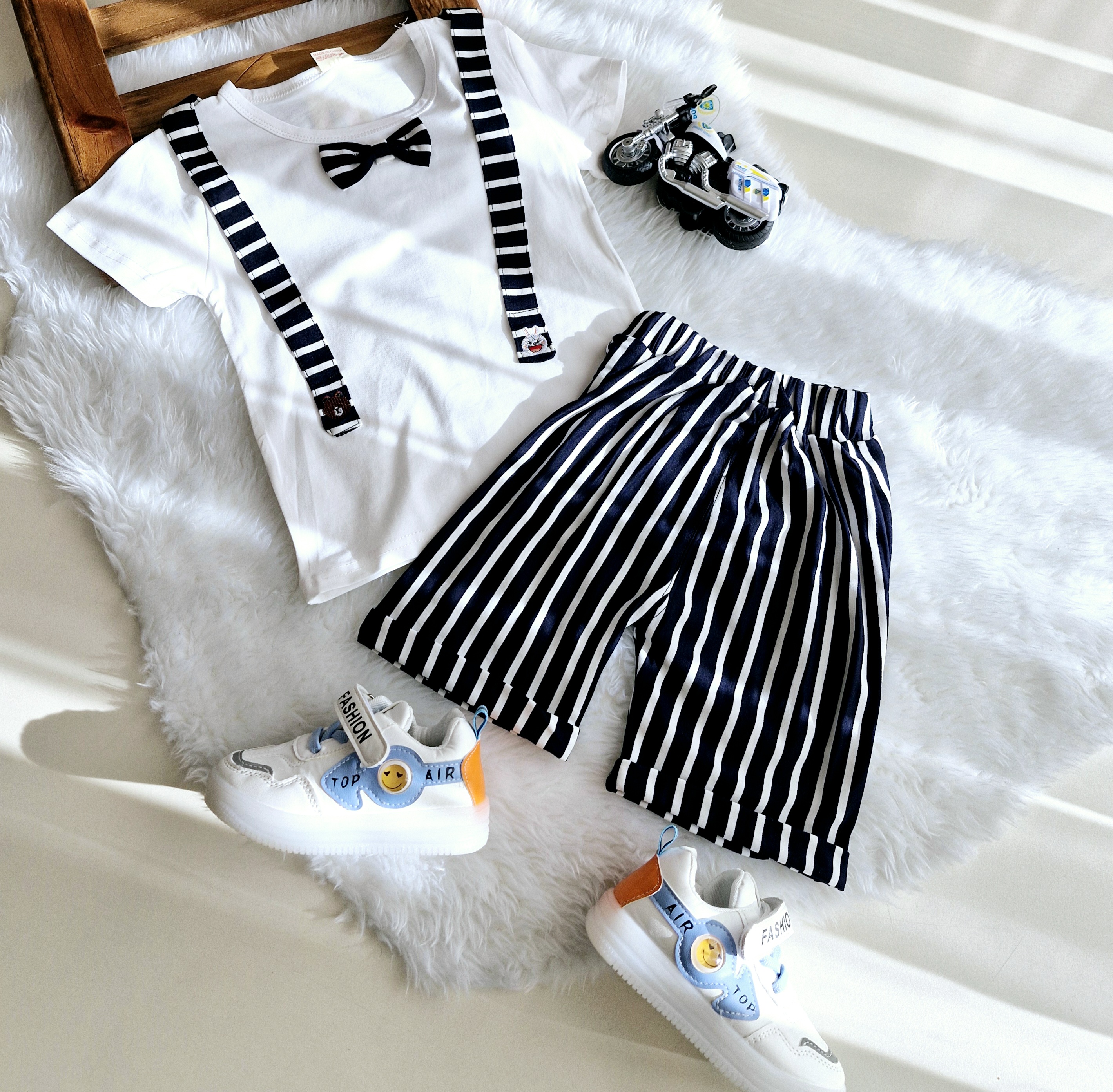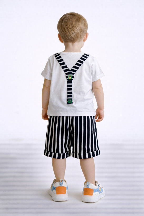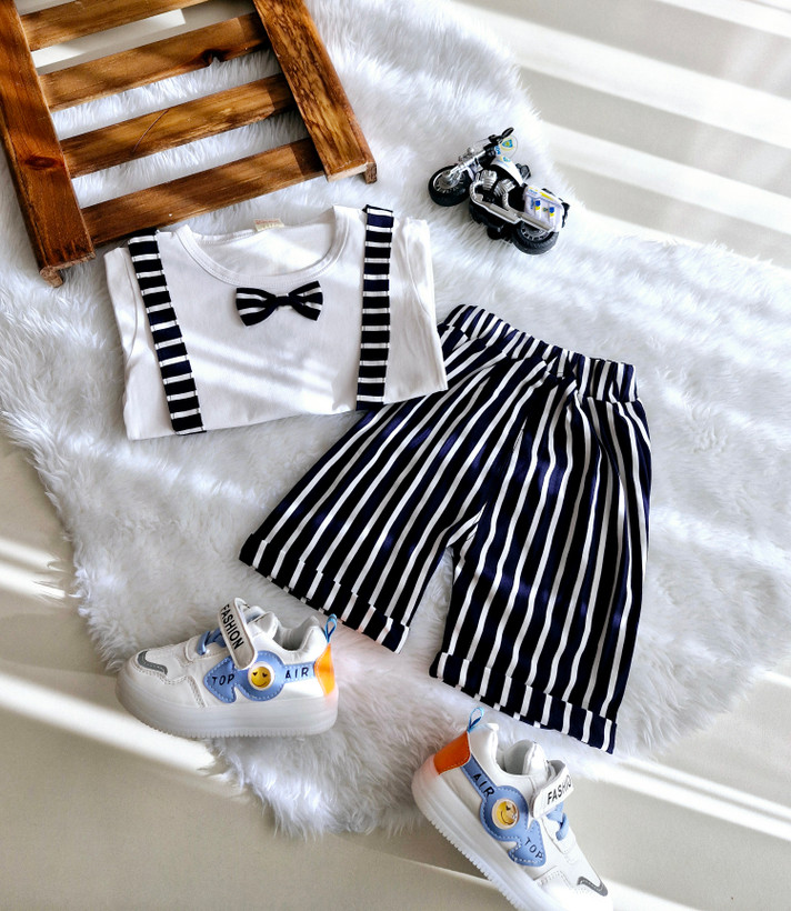 تیشرت شلوارک پسرانه وارداتی طرح خطی