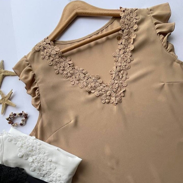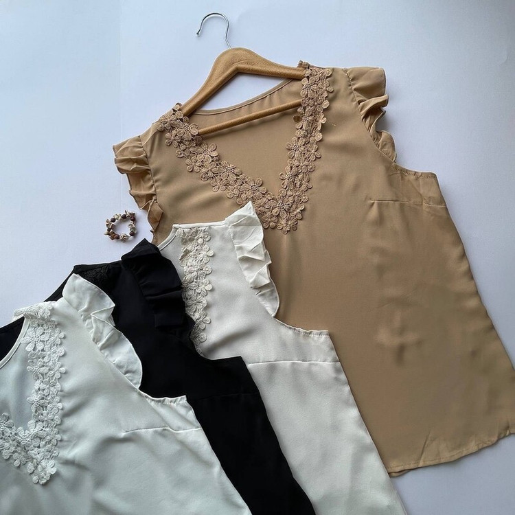 تاپ وارداتی زنانه یقه گیپور برنداصل SHEIN