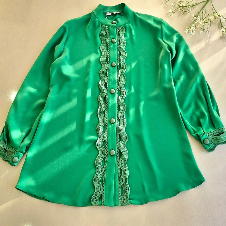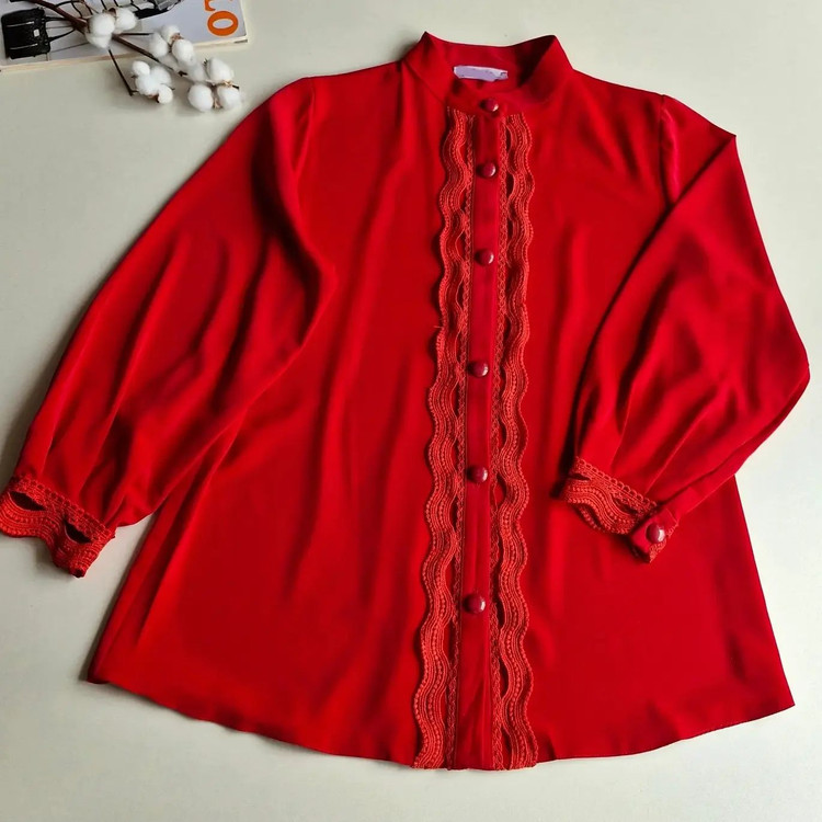 شومیز گیپوری زنانه سایزبزرگ باقد 75سانت جنس الیزه مرغوب