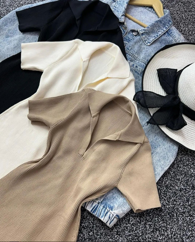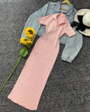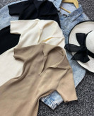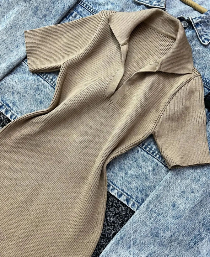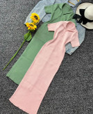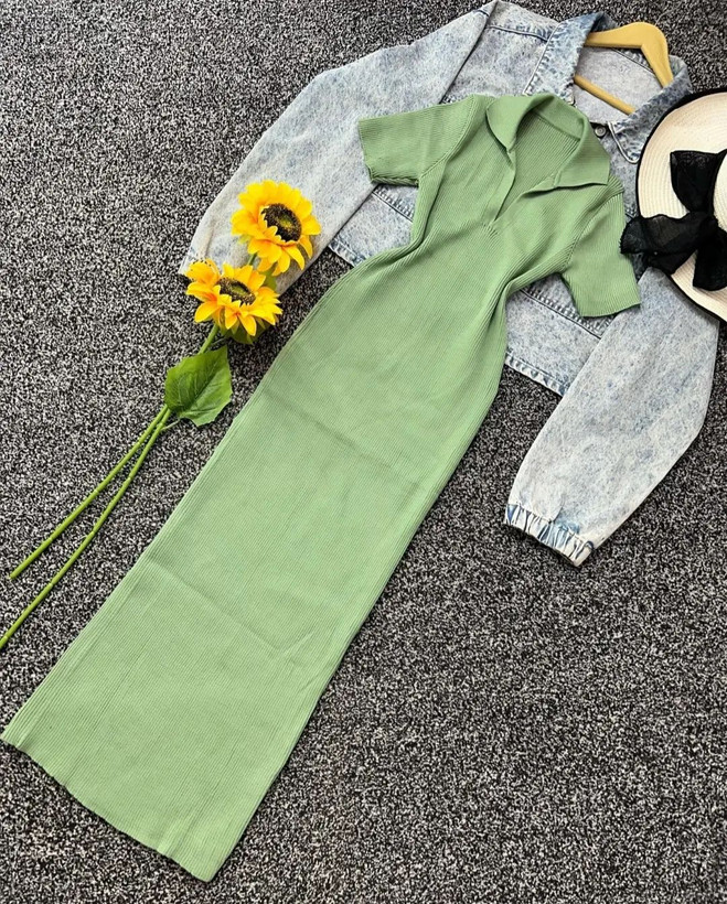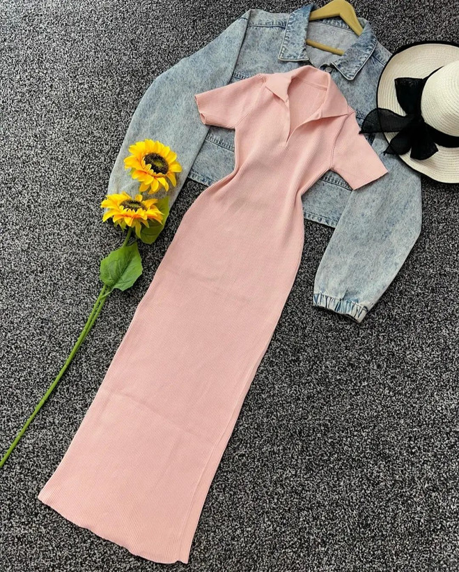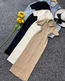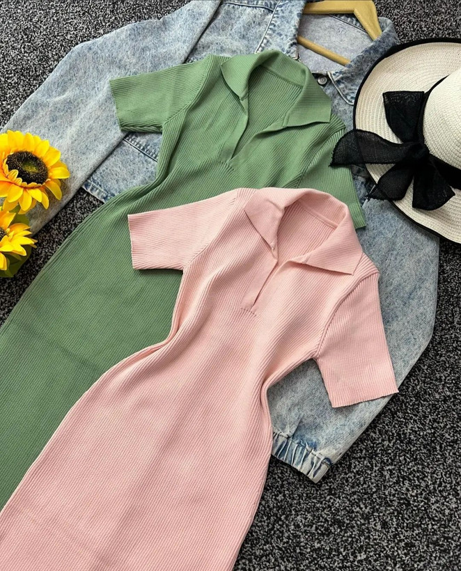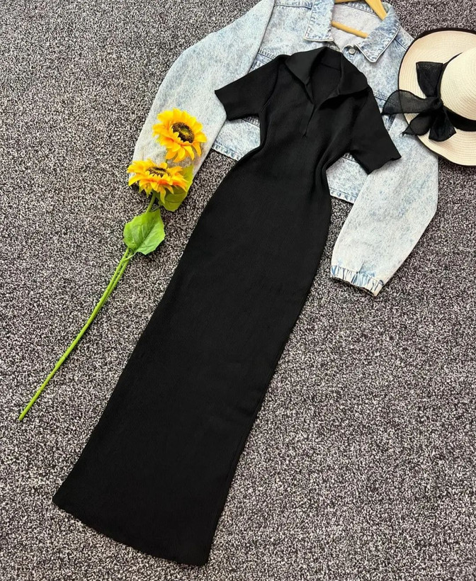 پیراهن ماکسی آستین کوتاه زنانه کشبافت یقه شکاری قد ۱۳۰سانت