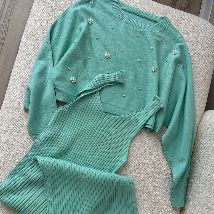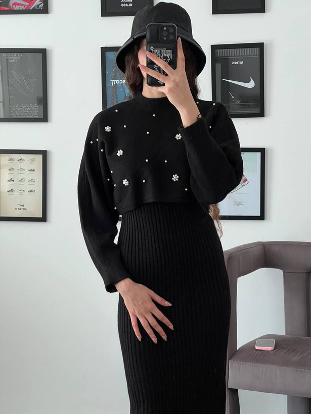 سرهمی بافت دوتیکه وارداتی زنانه مرواریدی قد۱۱۰سانت