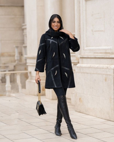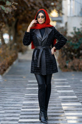 پالتو ترکیب چرم و پوست آستردار قد۸۰
