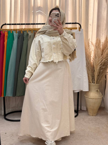 ناموجوددامن زنانه لینن ازبک قد۹۵ مدل جیب هلالی کشدار