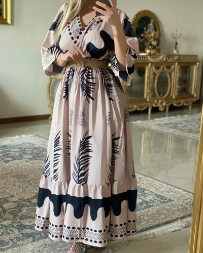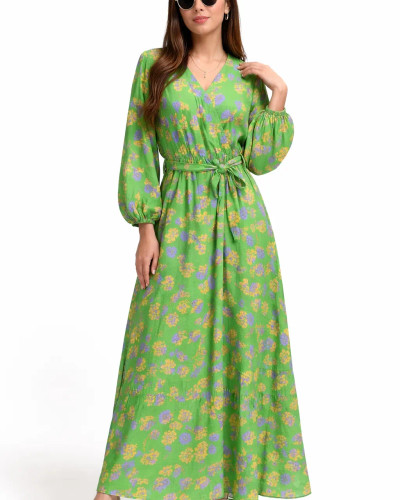 پیراهن ماکسی یقه اسکی کبریتی پنبهای | آستین حلقهای، فریسایز
