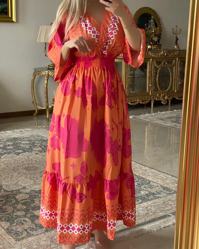 پیراهن ماکسی یقه خشتی رکابی کبریتی