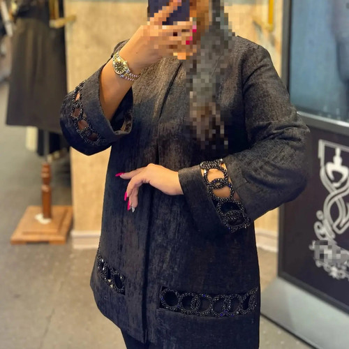 پالتو فوترزنانه آستردار قد۹۰ سنگدوزی شده