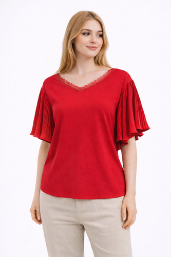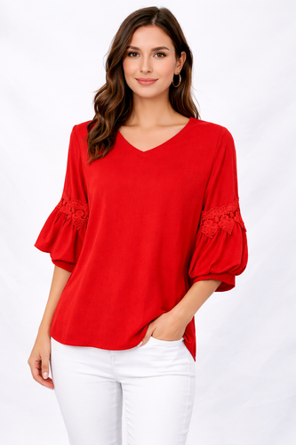 تاپ یقه گیپوری زنانه وارداتی جنس کرپ پفکی
