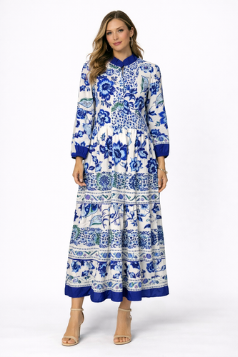 پیراهن ماکسی زنانه یقه ایستاده نگیندار | کبریتی پنبه