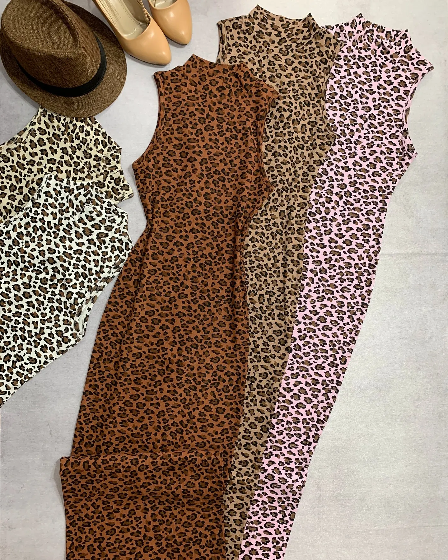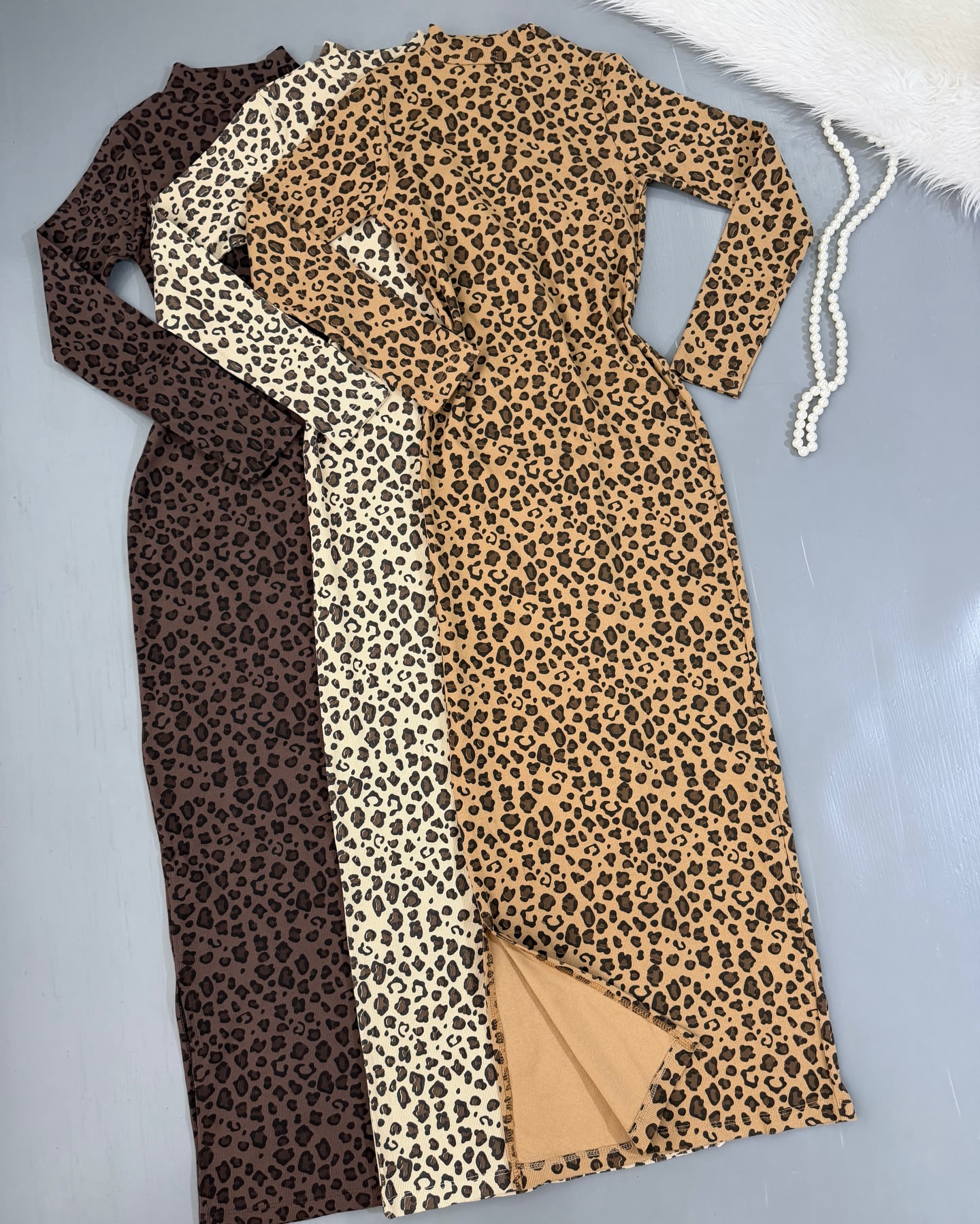 ماکسی پلنگی یقه اسکی زنانه | کبریتی پنبهای، فری سایز