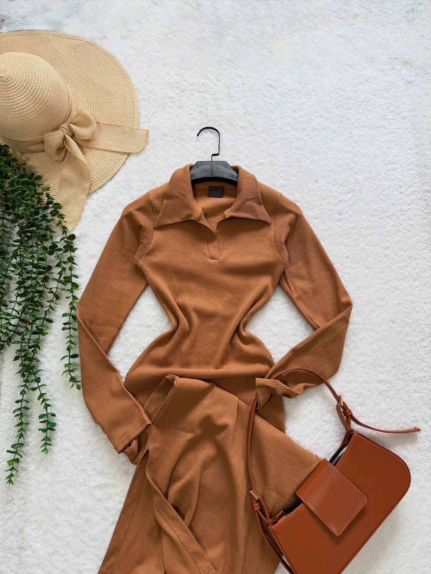 پیراهن ماکسی زنانه کبریتی یقه شکاری قد۱۲۵