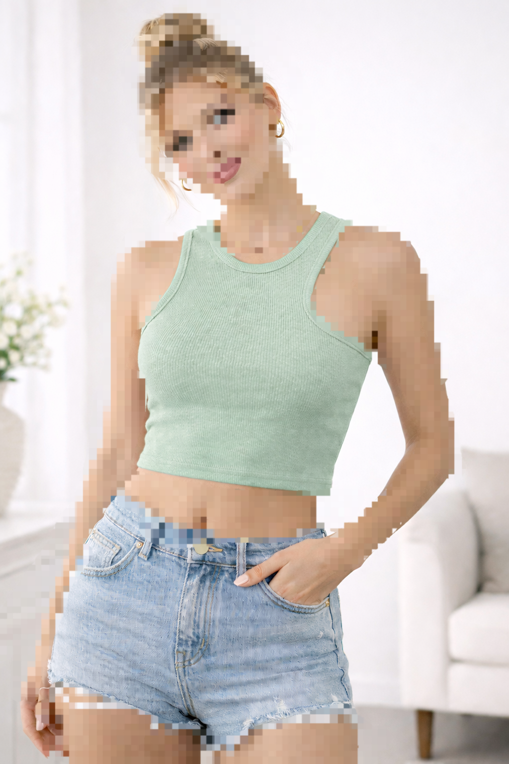 تاپ کراپ زنانه وارداتی جنس کبریتی ریز برند زارا ZARA گت دار
